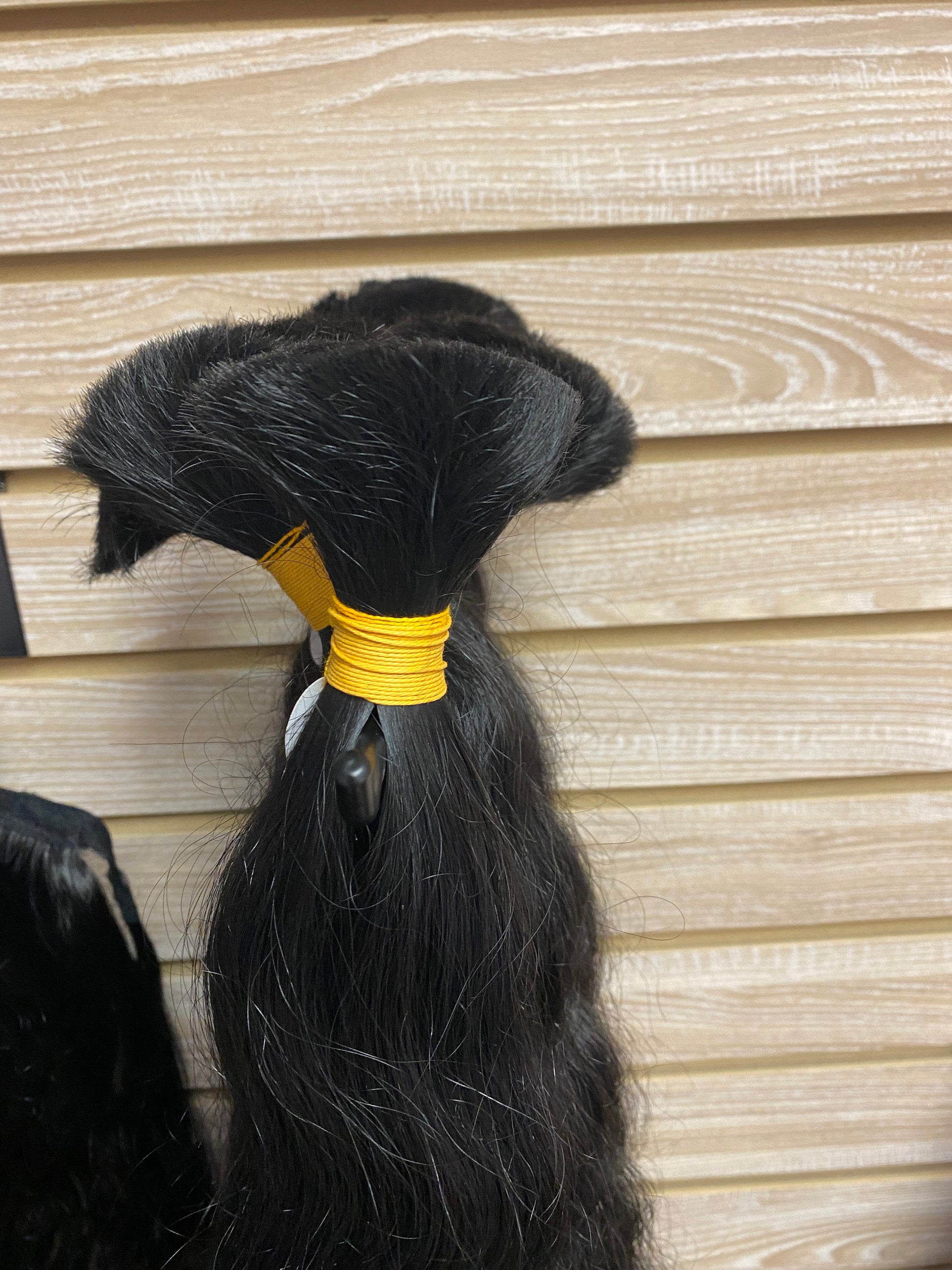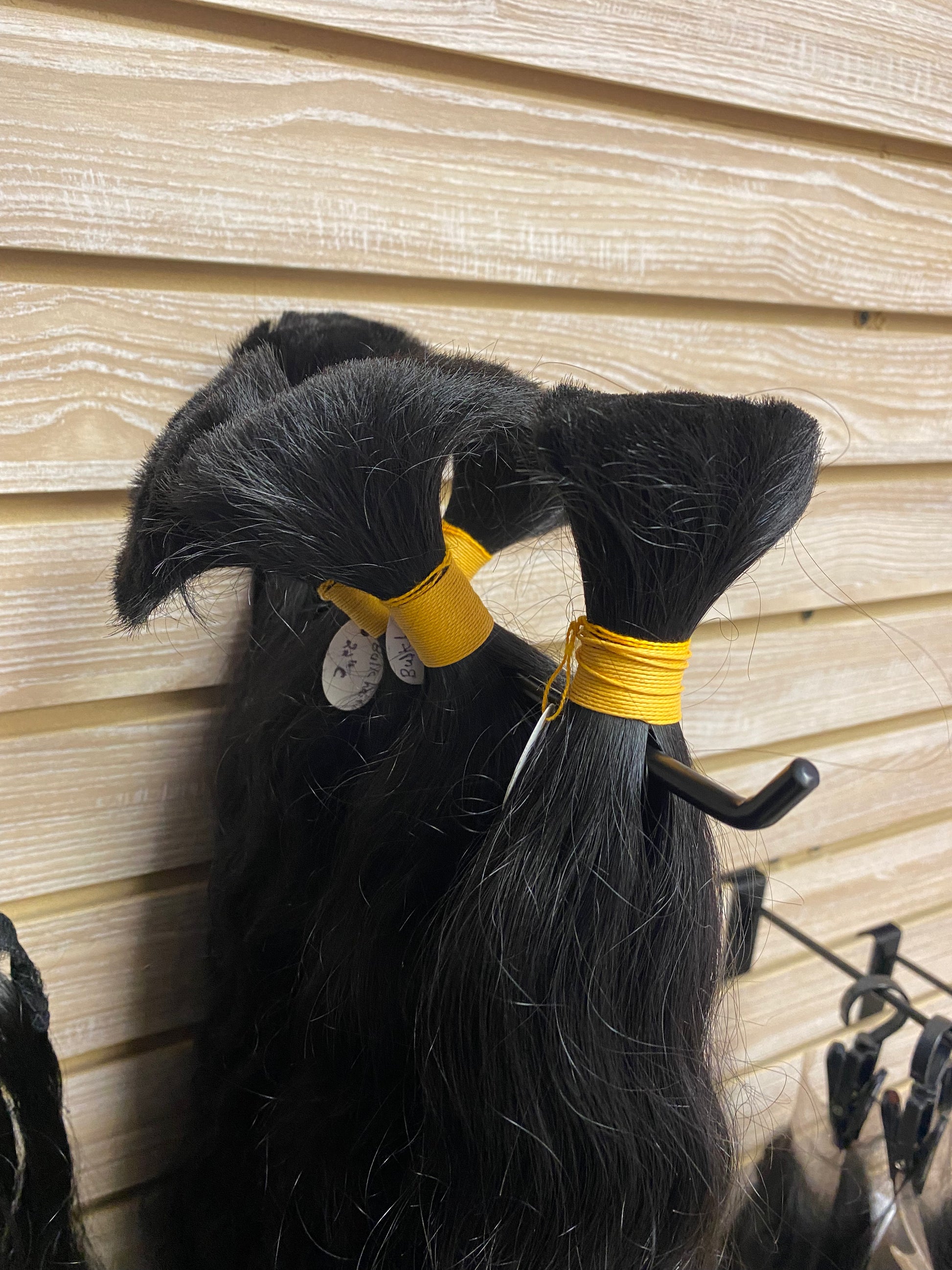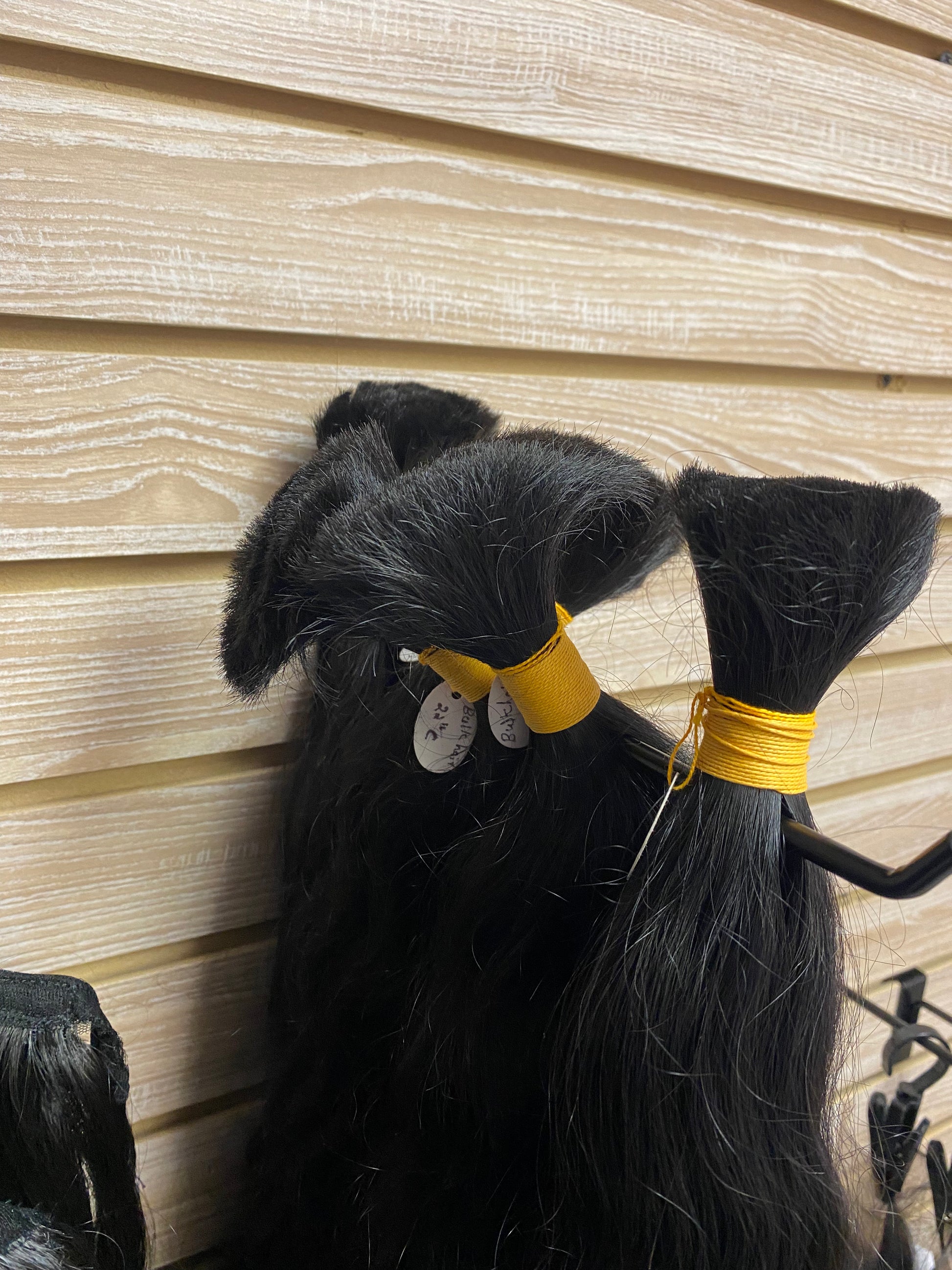 Bulk Hair is hair used for braiding, boho braids, mermaid braids, infusing, bonding, interlocking and many other techniques. This hair is not on a weft. 100 grams of hair